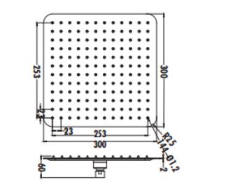 SH3030 ΚΕΦΑΛΗ ΤΕΤΡΑΓΩΝΗ ΧΡΩΜΕ SS304 30x30cm