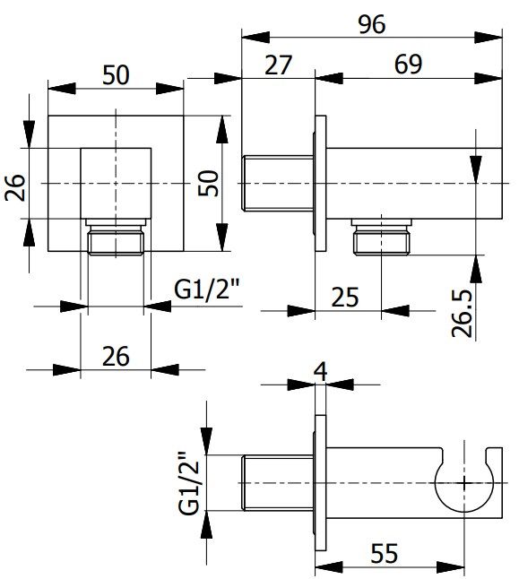 4263 ΕΠΙΤΟΙΧΗ ΠΑΡΟΧΗ 1/2″ ΜΕ ΒΑΣΗ ΣΤΗΡΙΞΗΣ ΤΗΛΕΦΩΝΟΥ ΤΕΤΡΑΓΩΝΗ (4134)