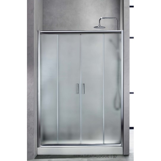 Βαρέως τύπου ευθύγραμμη πόρτα ντους, με 2 σταθερά φύλλα και 2 συρόμενες πόρτες.