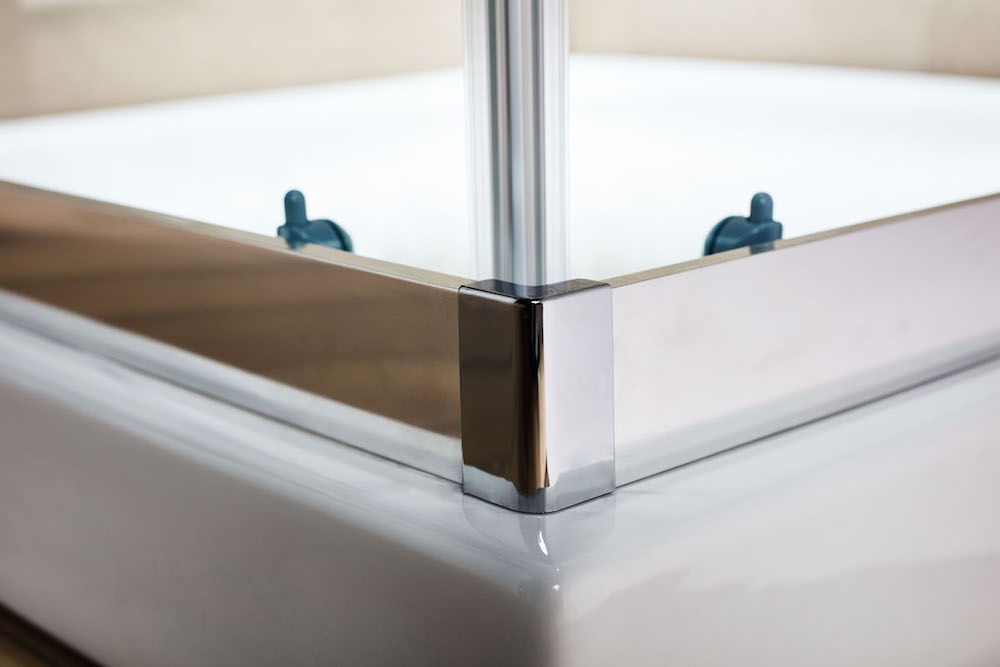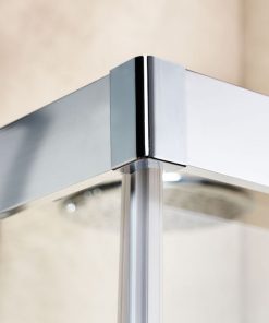 Βαρέως τύπου καμπίνα ντους, με δύο σταθερά φύλλα και δύο συρόμενες πόρτες.