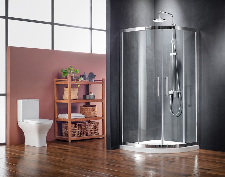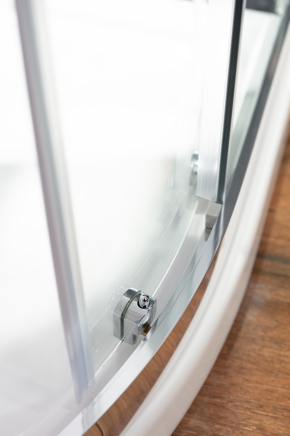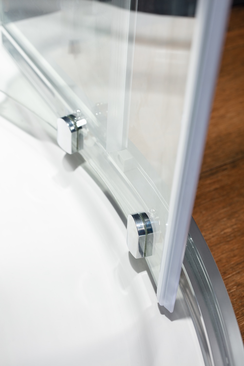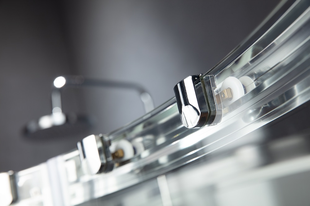 Βαρέως τύπου καμπίνα ντους, με δύο σταθερά φύλλα και δύο συρόμενες πόρτες.